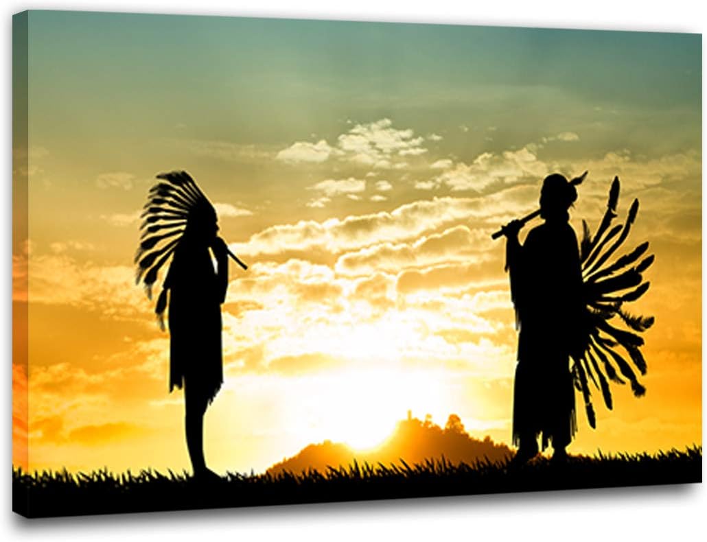 Amazon Com Silhouette Of Native American Indians Modern Canvas Paintings Sunset Background Wall Art Pictures For Home Wall Poster And Prints Living Room Decor Giclee Gallery Wrapped Ready To Hang 16 Wx24 H Posters Prints